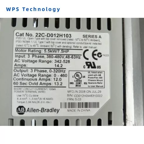 Welcome to the product detail page of Wanpeisi® Technology. Today we introduce the Allen Bradley 22C D012H103 frequency converter. If your project requires a conventional frequency converter, then this model 22C-D012H103 frequency converter is a good choice for you. Wanpeisi® Technology is the supplier of this frequency converter and looks forward to cooperating with you.